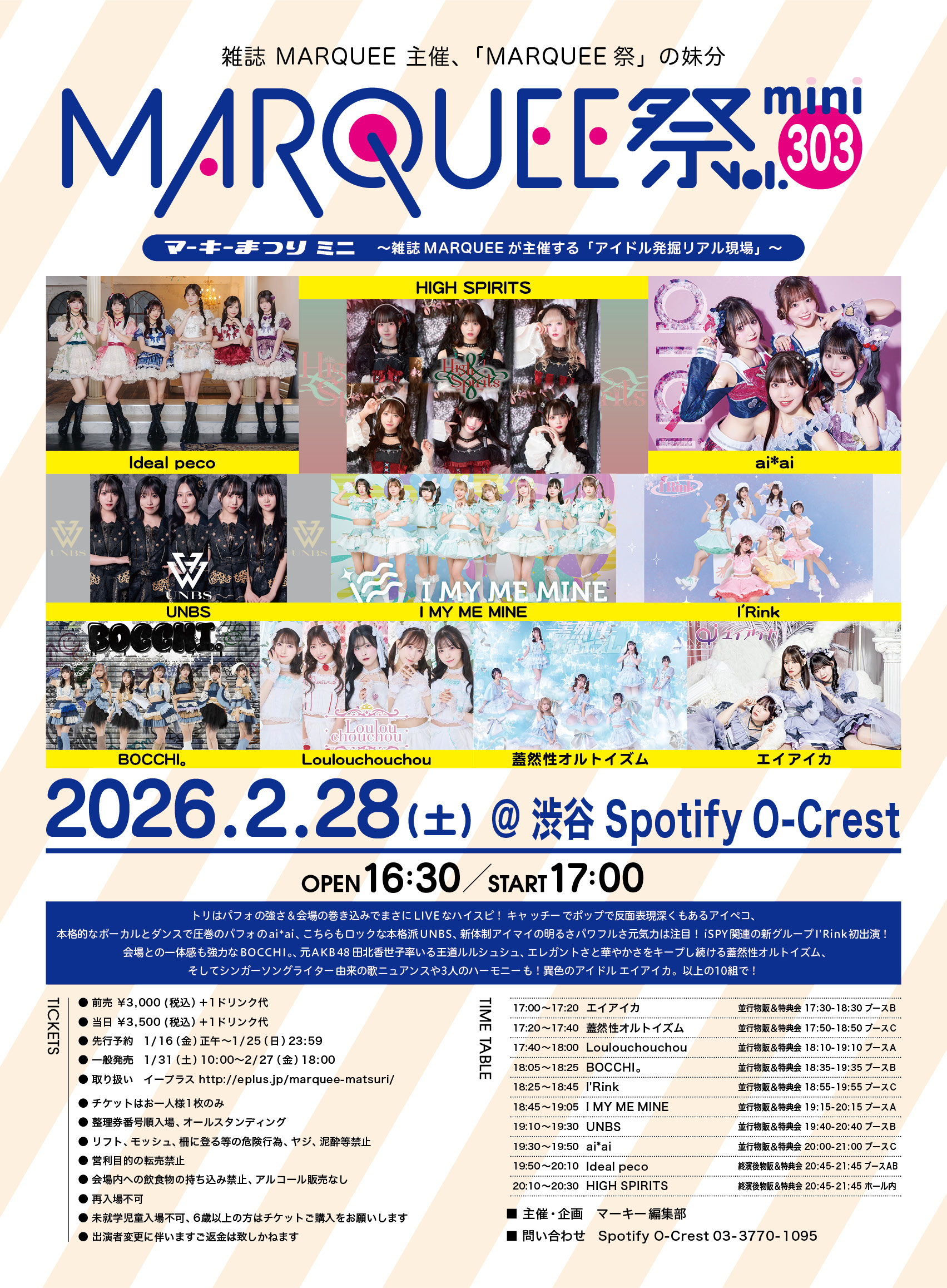 雑誌 MARQUEE 主催、「MARQUEE祭」の妹分 MARQUEE祭mini Vol.303