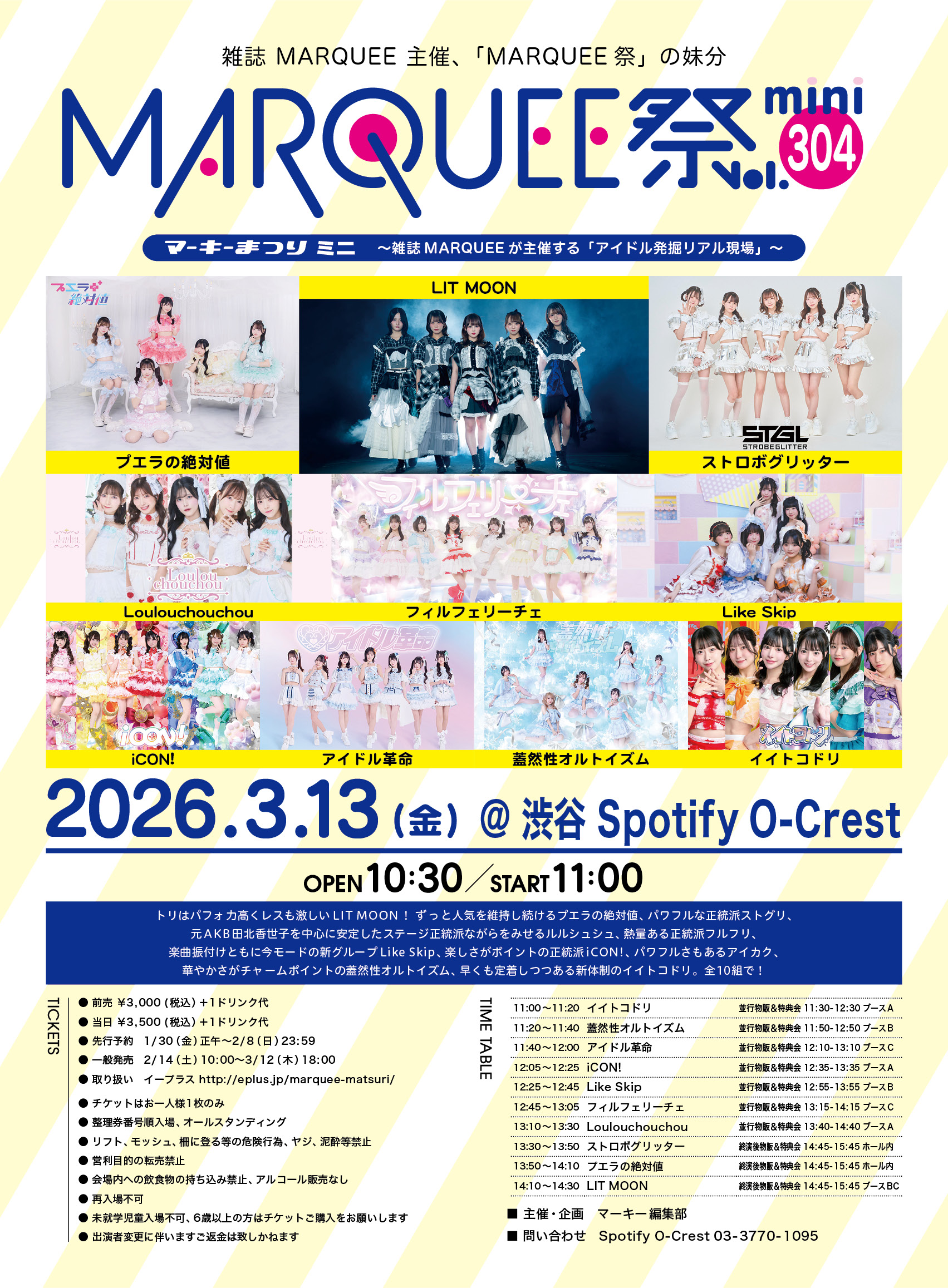 雑誌 MARQUEE 主催、「MARQUEE祭」の妹分 MARQUEE祭mini Vol.304