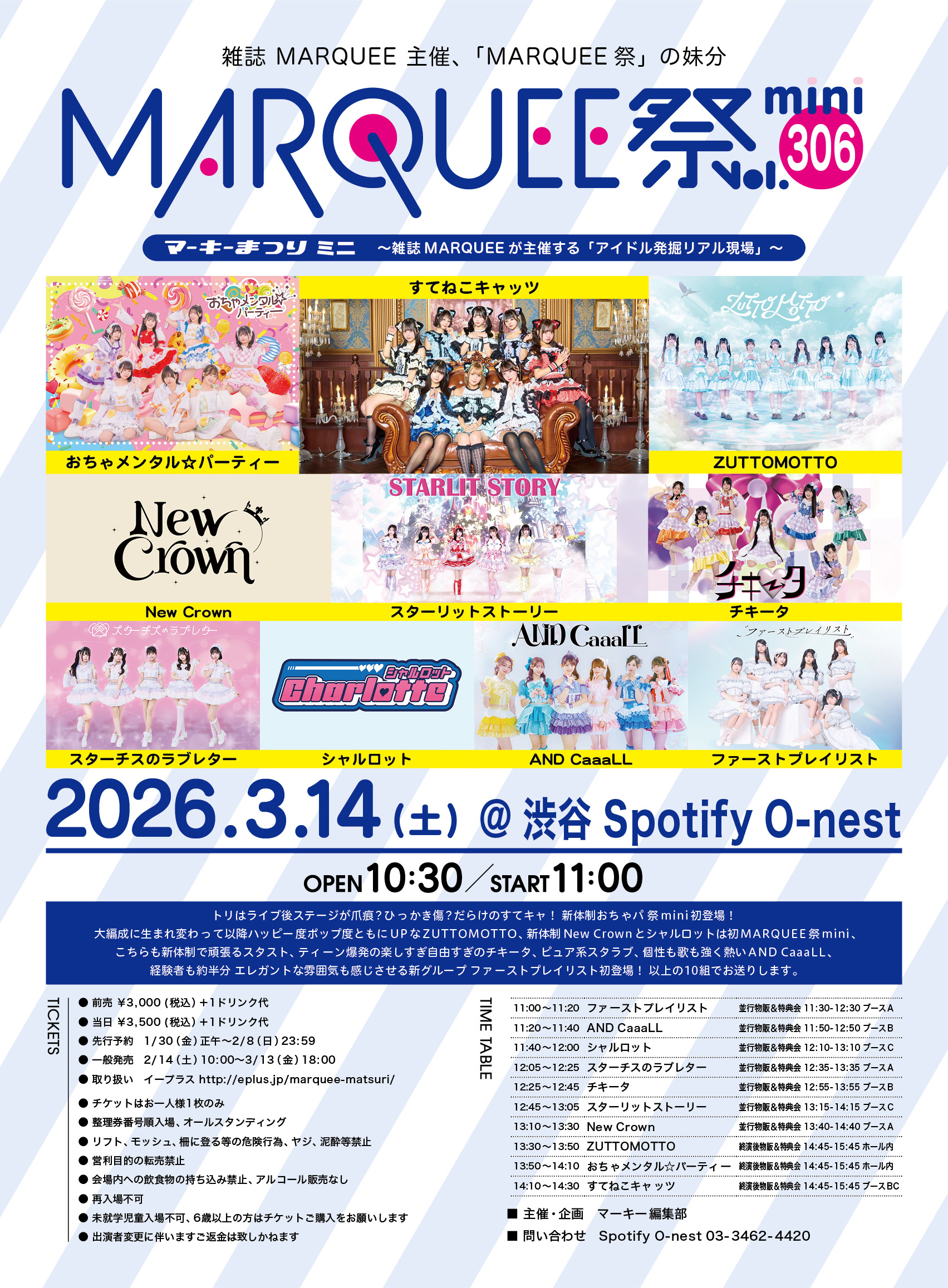 雑誌 MARQUEE 主催、「MARQUEE祭」の妹分 MARQUEE祭mini Vol.306
