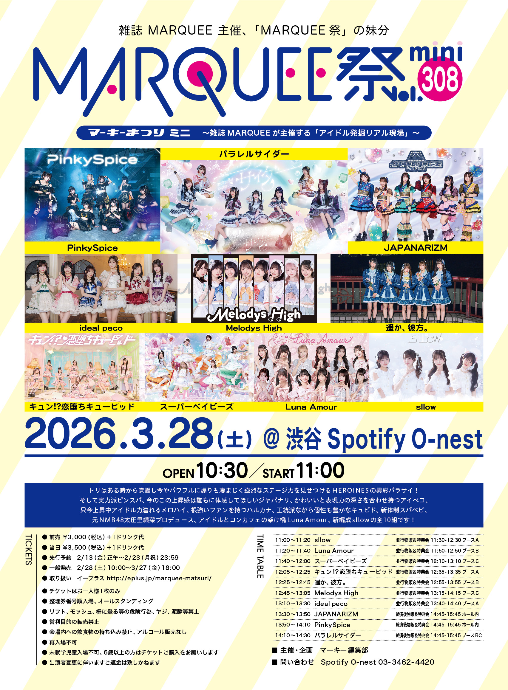 雑誌 MARQUEE 主催、「MARQUEE祭」の妹分 MARQUEE祭mini Vol.305