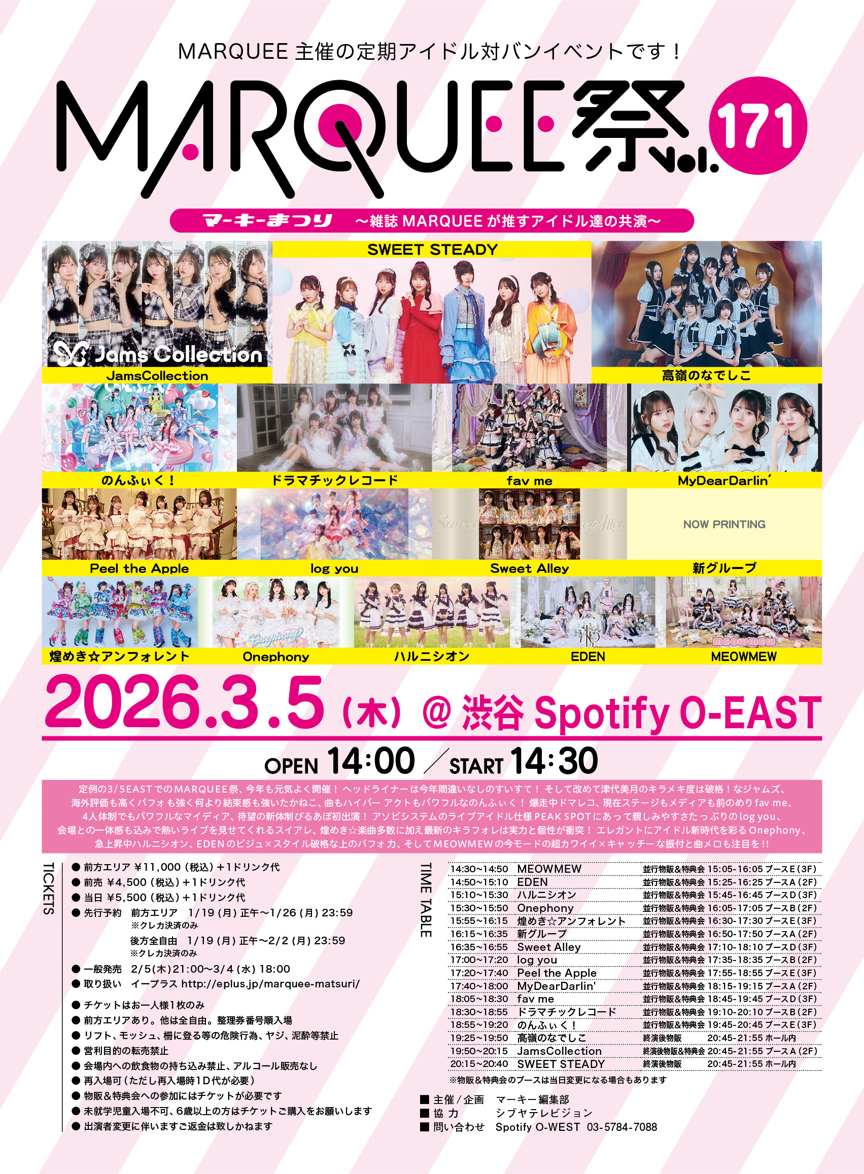 MARQUEE主催の定期アイドル対バンイベントです! MARQUEE祭 Vol.171