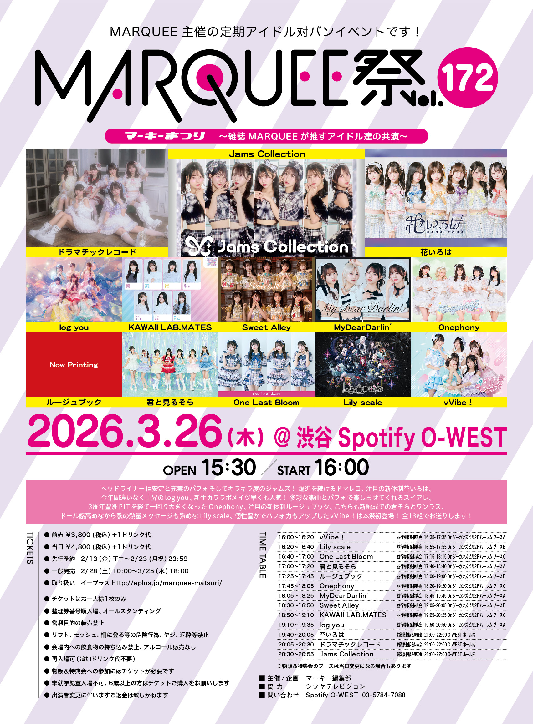 MARQUEE主催の定期アイドル対バンイベントです! MARQUEE祭 Vol.172